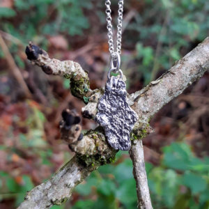 Voici une feuille de vigne en argent faite main. C’est en travaillant sur une véritable feuille que j’ai pu obtenir de si fines nervures et de si jolis détails. C’est ainsi qu’est né ce pendentif.